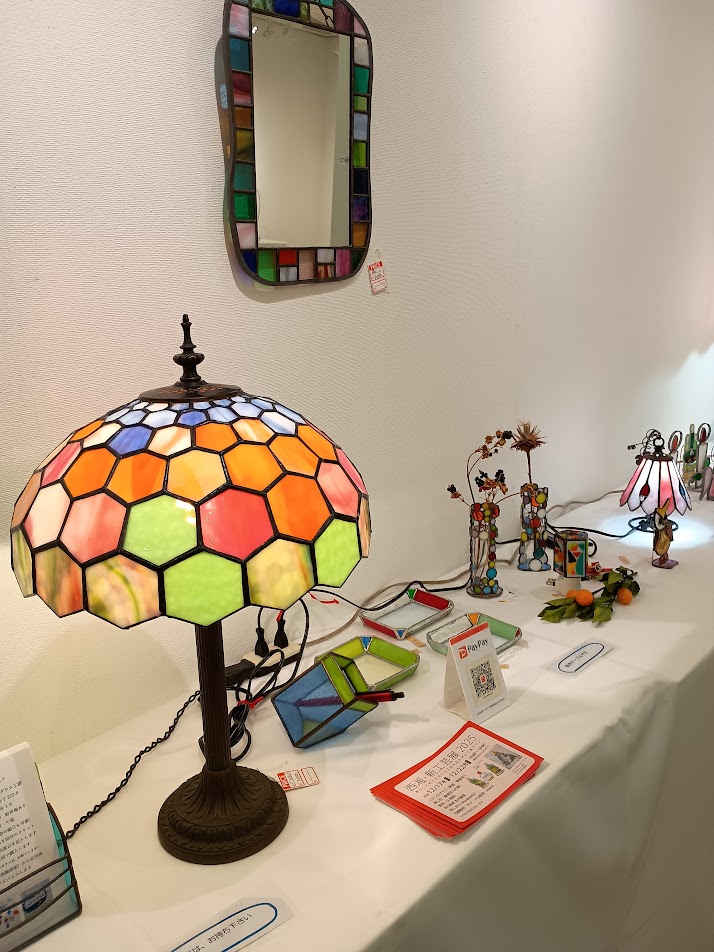 作品展、無事終了 glass 2026年1月3日 作品展、無事終了2026-01-03T19:26:09+09:00 General, 工房通信 No Comment ダイナシティ4階のギャラリー新九郎で開かれた新湘南工芸展、ステンドグラス、木工、押し花、彫刻、石鹸彫刻の作品が並べられました。会期中毎日50名程の来場者を迎え、とても好評でした。ご協力ありがとうございました。 販売を兼ねて展示しました これが押し花作品ですかという力作です Related Posts 久しぶりに雛人形作り 12月作品展のお知らせ お友だちとワークショップに あと2日で終わります 11月瀬戸屋敷、ワークショップ トイプードル